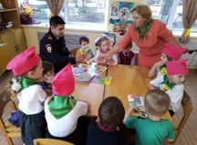 На праздник 5-летию образования команд ЮПИД "Дорожную азбукуучим с ЮПИД" был приглашён папа воспитанника нашего детского сада сержант полиции Дегтярёв Эдуард Анатольевич.