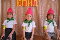 В команду воспитанников входят 4 самых активных воспитанников подготовительной дошкольной подгруппы. Совместно с детьми придуманы и выбраны: отличительные значки, девиз, песня и речёвка отряда. Родительским активом разработаны и изготовлены костюмы юных юпидовцев.