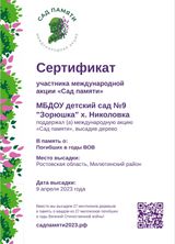 Пусть наше дерево станет частичкой «Сада памяти», храня память и традиции всей страны. Помнить о войне необходимо, чтобы не забывать какой ценой она нам досталась. 27 миллионов человек отдали свои жизни ради нашего светлого будущего и чистого неба над головой. 27 миллионов деревьев, которые мы посадим в рамках акции «Сад памяти», это не просто дань памяти погибшим, это живой памятник.